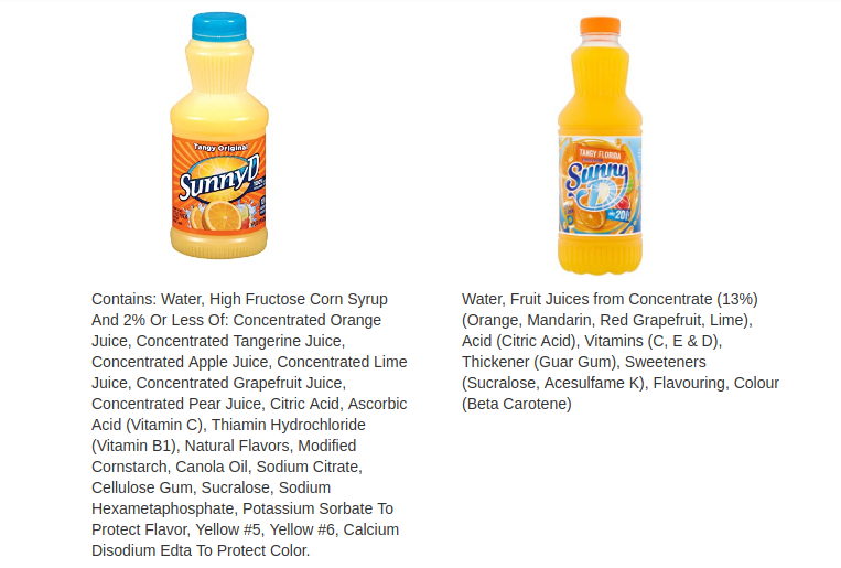 Sunny d ingredient list