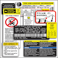 General Replacement Auto Labels Information-VIN Sticker Replacement ... Labels, such as VIN, tire pressure, airbag, mercury and other safety/warning labels, are usually located in the door jamb. Other vehicle labels that are maintenance related can usually be found under the hood, these include VECI emissions, VHRD diagram, AC & Coolant (R- 134) and some safety & warning labels as well.