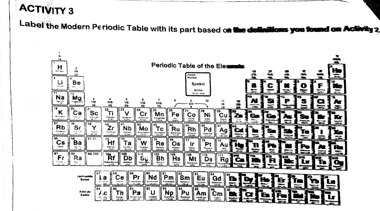Labeling the periodic table activity