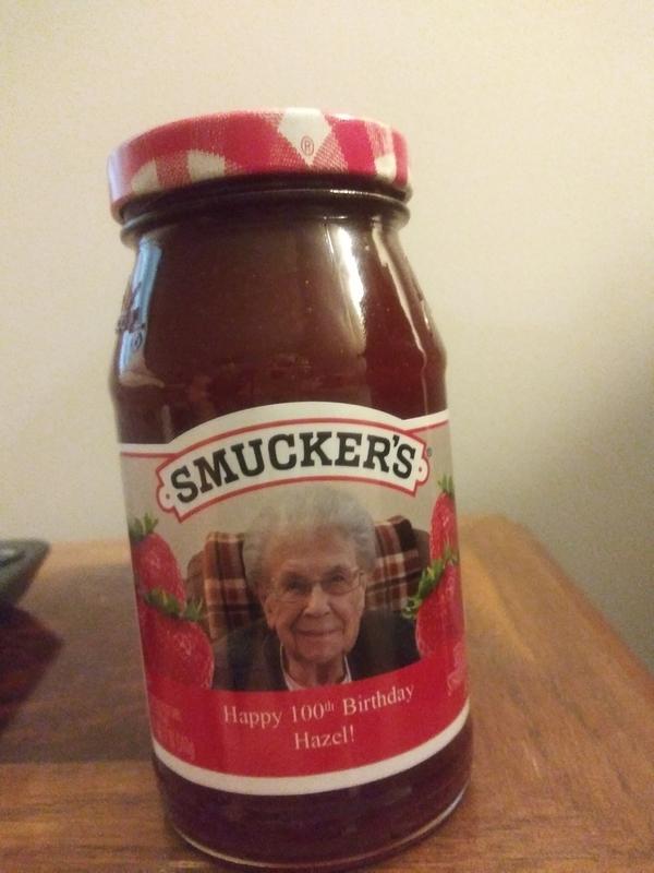 96-year-old gets her face on Smucker's jar | 9news.com For years, the Today show has given people who turn 100 years old the chance to see their face printed on a Smucker's jar. Willard Scott started the tradition years ago, and Al Roker keeps it going. Martha Scott Turns 100 - Smuckers Jar, Willard Scott - YouTube Willard Scott announces birthdays on the Today Show, May 27, 2010, including Mike's grandma, Martha Scott. Amazon.com: SMUCKERS Smucker's, Apple Jelly, 18oz Glass Jar (Pack of 2) 1.12 Pound (Pack of 2) 4.6 out of 5 stars 403. $13.84 $ 13. 84 ($0.38/Ounce) FREE Shipping on orders over $25 shipped by Amazon. Only 1 left in stock - order soon. More Buying Choices $12.80 (6 new offers) Smucker's Simply Fruit Seedless BlackBerry Spread, 10 oz, 2 pk. Other | Smuckers Jar | Poshmark Shop Home's Size OS Other at a discounted price at Poshmark. Description: A 100th edition smuckers jar, a great collectors item.. Sold by kyajones84. Fast delivery, full service customer support.
