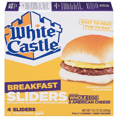 White Castle Cheeseburgers Sliders - 6 ct - Stop and Shop Details. White Castle® Sliders Cheeseburgers. Meat is 100% beef. 6 Microwaveable sliders: 3 - 2 Packs. Net Wt 11 oz (312 g). White Castle® - Home of the original slider®. We're pretty sure someone famous once said ''the slider is greater than the sum of its parts.''. Or something like that. Because when you take cheese, a 100% beef patty on ...