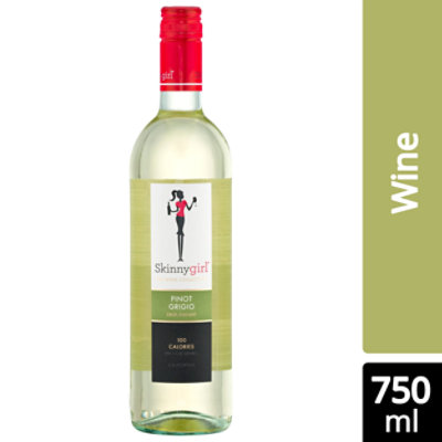 Skinny Girl Wines, Vodkas and Ready-to-Serve Cocktails Moscato - 100 Calories per 5 fl oz serving Pinot Grigio - 100 Calories per 5 fl oz serving Red Blend - 100 Calories per 5 fl oz serving Rosé - 100 Calories per 5 fl oz serving White Blend - 100 Calories per 5 fl oz serving. Vodka | $14.99 Bare Naked - 75.1 calories per 1.5 fl oz Cucumber - 75.8 calories per 1.5 fl oz