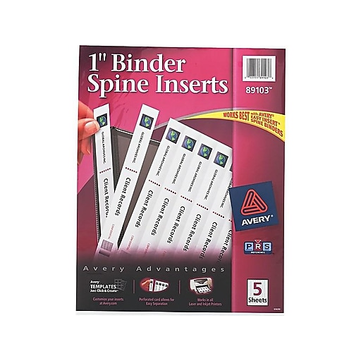 Create Spine Inserts for Presentation Binders using Templates Step 1: Start with a free template Get started with a free Avery Template. Under Templates, click on Binders. Step 2: Select Specific Product Under Binders, click on Binder Spine Inserts to narrow your search. Then, under Template Types, click on "Browse Avery Designs" Step 3: Choose a Template
